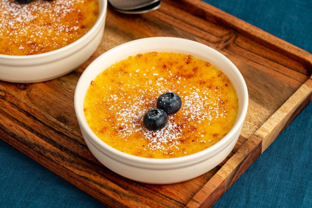 Tatlının alt kısmı şeker, vanilya, yumurta ve kremadan oluşan bir muhallebi. Bu muhallebi servis edilmeden önce üzerine toz şeker serpiliyor ve şeker ateşle yakılarak ince ama sert bir karamel tabakası oluşması sağlanıyor. Böylece yumuşak muhallebiye ile çıtır çıtır karamel parçacıkları eşlik ediyor.